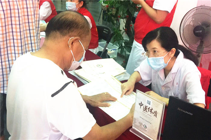 活动开始,社区居民们蜂拥而至,在工作人员的合理安排下,他们有的排队针灸,有的排队贴三伏贴、有的排队做中医体质辨识...活动中,志愿者们细心热情的接待每位居民,耐心回答居民提出的有关中医医疗保健方面的问题,向居民发放了中医健康教育宣传资料。