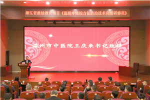 举办的浙江省专业技术人员“中医特色疗法防治颈椎病高级研修班”暨浙江省继续教育项目《肌筋膜疼痛综合征防治技术》在医院综合楼8楼报告厅顺利举办。