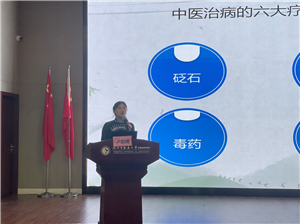 浙江省中医药传承与创新中医护理优秀人才、温州市中医药学会主任委员卢韵琦带来课程《中医导引与康复》。导引法为中医治病的六大疗法之一,卢主任分享了中医健身学的理念,告知三调合一的身心锻炼技能,并将五音谱、六字诀、五禽戏进行解说,内容新颖丰富。